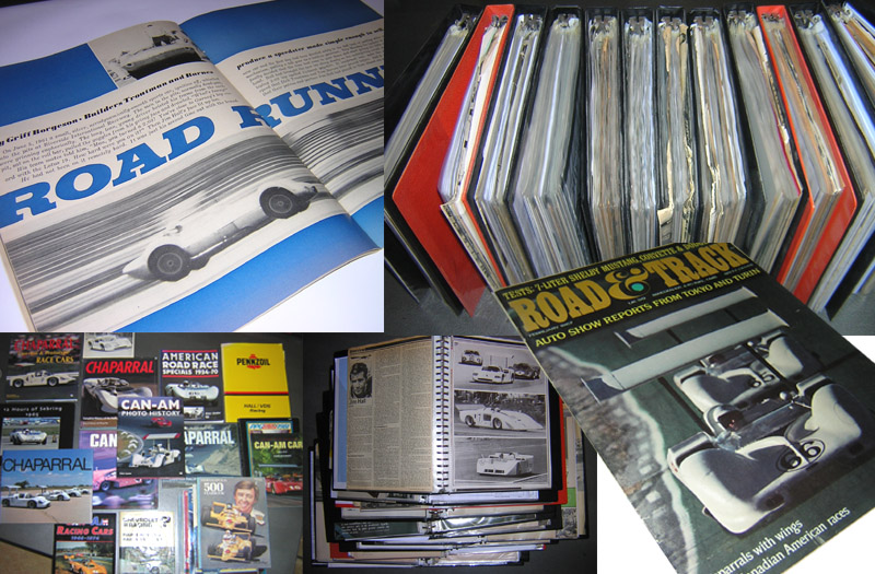 At that very moment I couldn't realize it was to be the beginning of a serious hobby. I started to collect information about the Texan racing breed. From different sources I was provided with copies of articles from international car magazines. It became a continuous growing archive and grounded increasing knowledge about this subject. During the following years I became aquainted to a lot of motor racing enthusiasts but hardly any of them had even the slightest idea about Chaparral. So the thought raised of creating a kind of Chaparral platform. For various reasons it never came to fruitation. However, with the possibilities internet provides, combined with my son's skills as a webmaster, finally we can proudly present: The Chaparral Files.